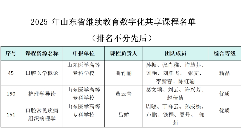 山东医学高等专科学校13门课程成功入选2025年度省级课程资源