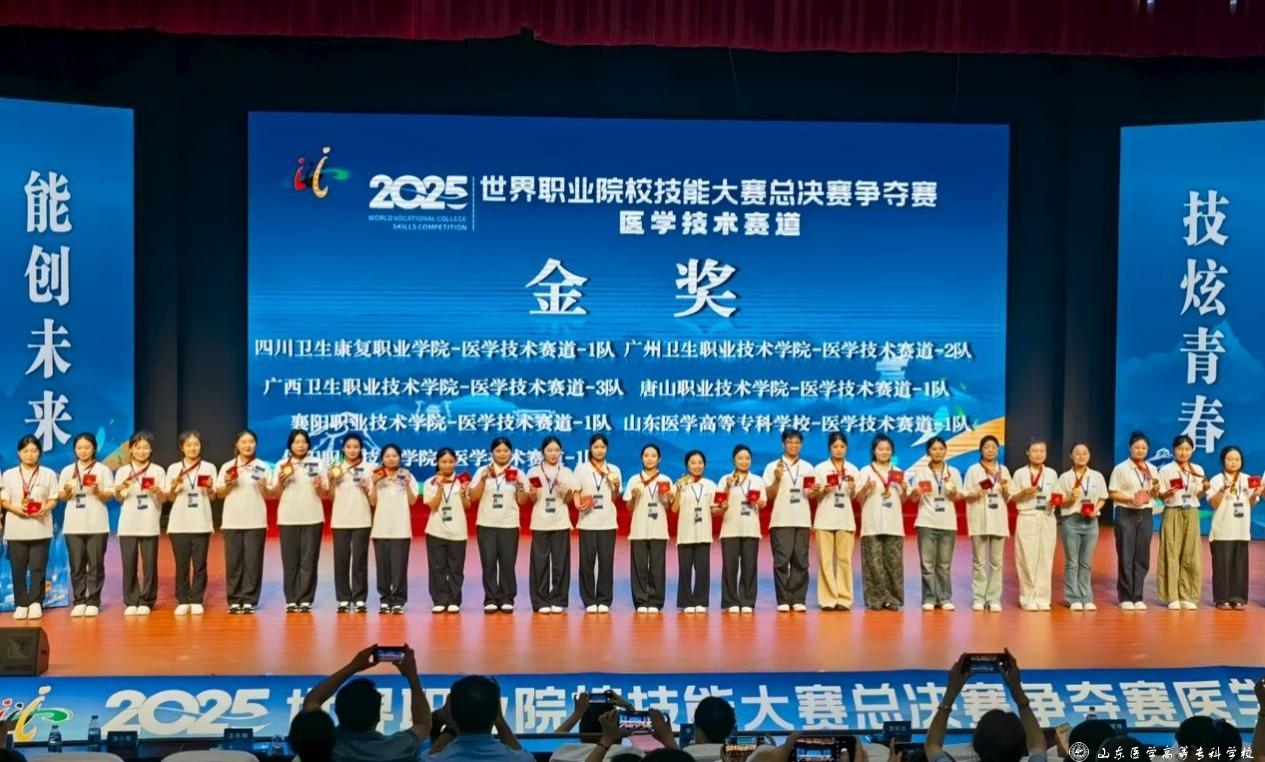 8月22日,2025年世界职业院校技能大赛总决赛争夺赛医学技术赛道高职组在信阳职业技术学院圆满落下帷幕,由我校医学检验系教师谢乐、孙运芳指导,杨浩然、吴烨南、李晓菲、赵赛男等同学组成的代表队,斩获医学技术赛道高职组金奖。